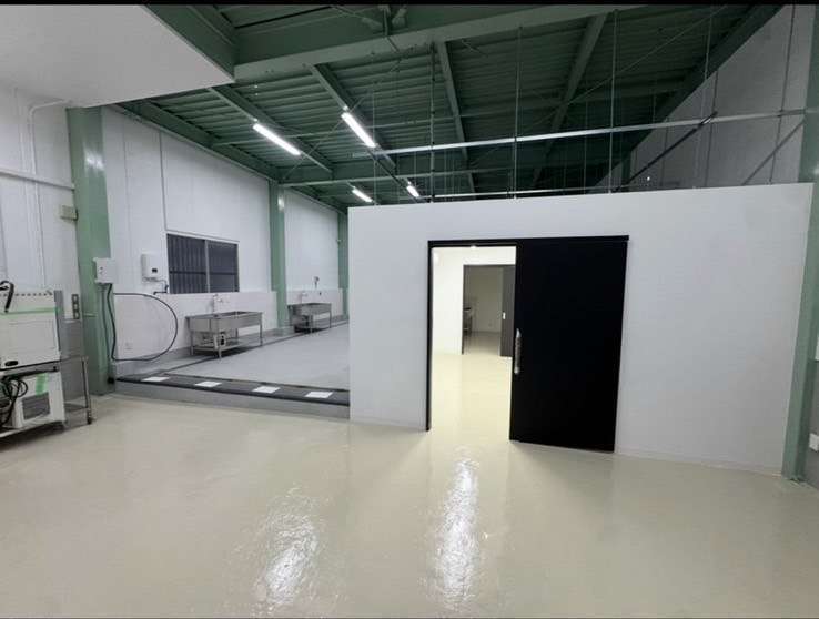 1階倉庫はお客様の要望でコンクリートでかさ上げし、さらに給排水工事、シンク取付、